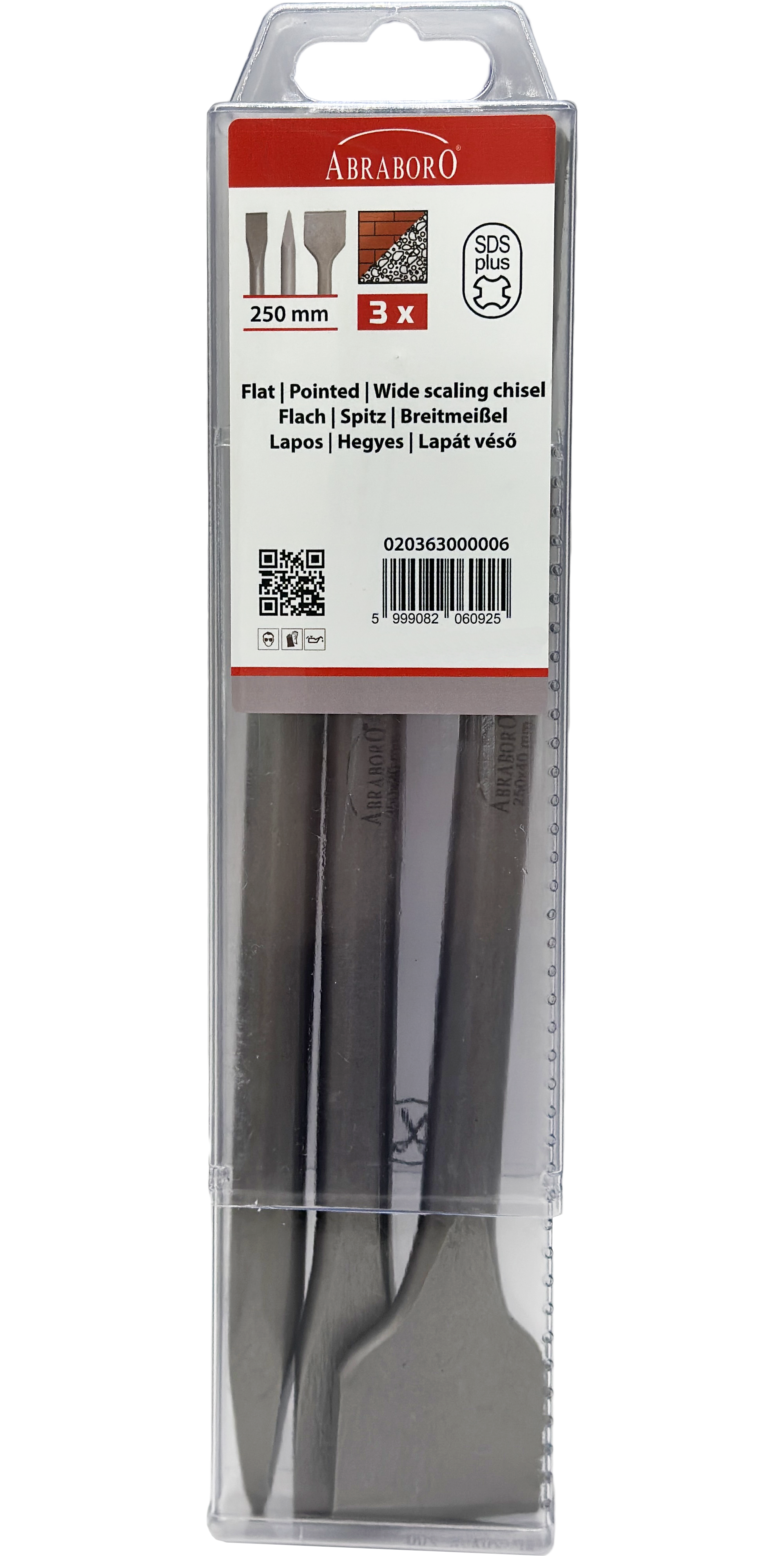 Abraboro SDS-plus vésőkészlet (lapos, hegyes, lapát), 3 részes